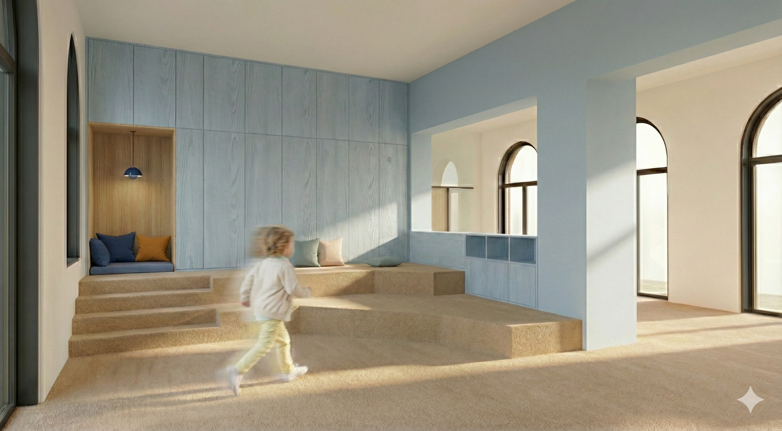 Lernwelten, die Entwicklung unterstützen und Konzentration fördern – mit durchdachten Zonen für Spiel, Rückzug und Gemeinschaft.