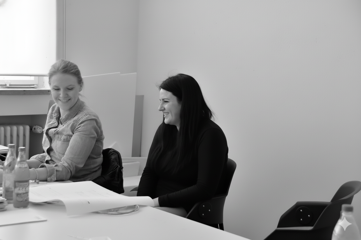2013 hatten wir beide unser Diplom in der Tasche – und unsere Wege trennten sich räumlich: Sarah blieb in München, Natalia zog nach Nürnberg. Aber unsere Verbundenheit blieb: zur Innenarchitektur, zum Design – und zueinander. In den folgenden Jahren sammelten wir jeweils über dreizehn Jahre Erfahrung in Architektur- und Innenarchitekturbüros – und wurden Mamas von insgesamt fünf Kindern.